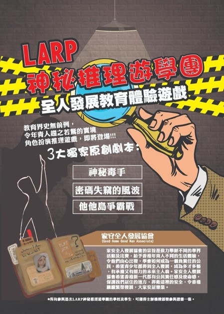 此活動是本會成立後第一個舉辦的社區活動,活動的宗旨是透過時下最流行的角色扮演推理遊戲(LARP),令中學生從劇本中遊戲中親自體驗,以日常生活的情節加強對國家安全法的認識。角色扮演推理遊戲靈活多變,劇本創新,可訓練思維,亦可培養學生的解難能力,結合 STEAM 元素,在遊戲娛樂中學習國家安全法,也能增加學生對認識國家安全法的好感及興趣